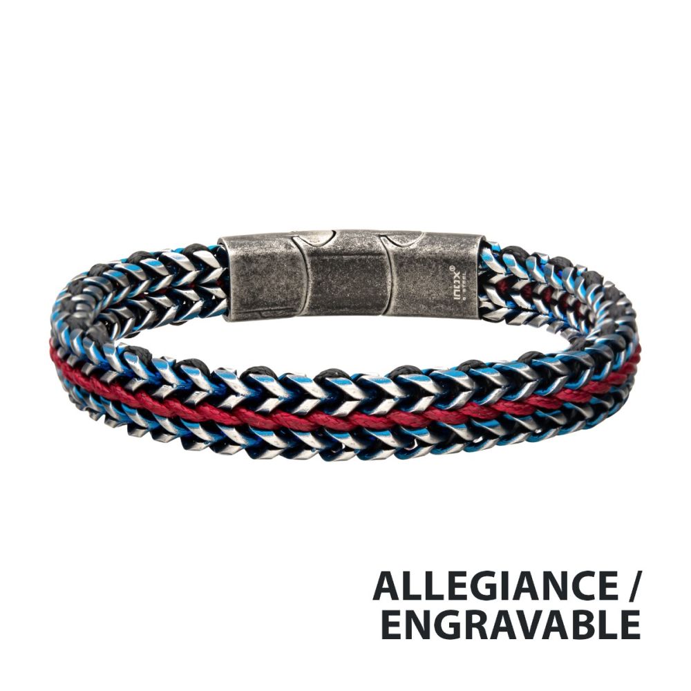 Antique Finish Foxtail Chain with Red Wax Cord Bracelet