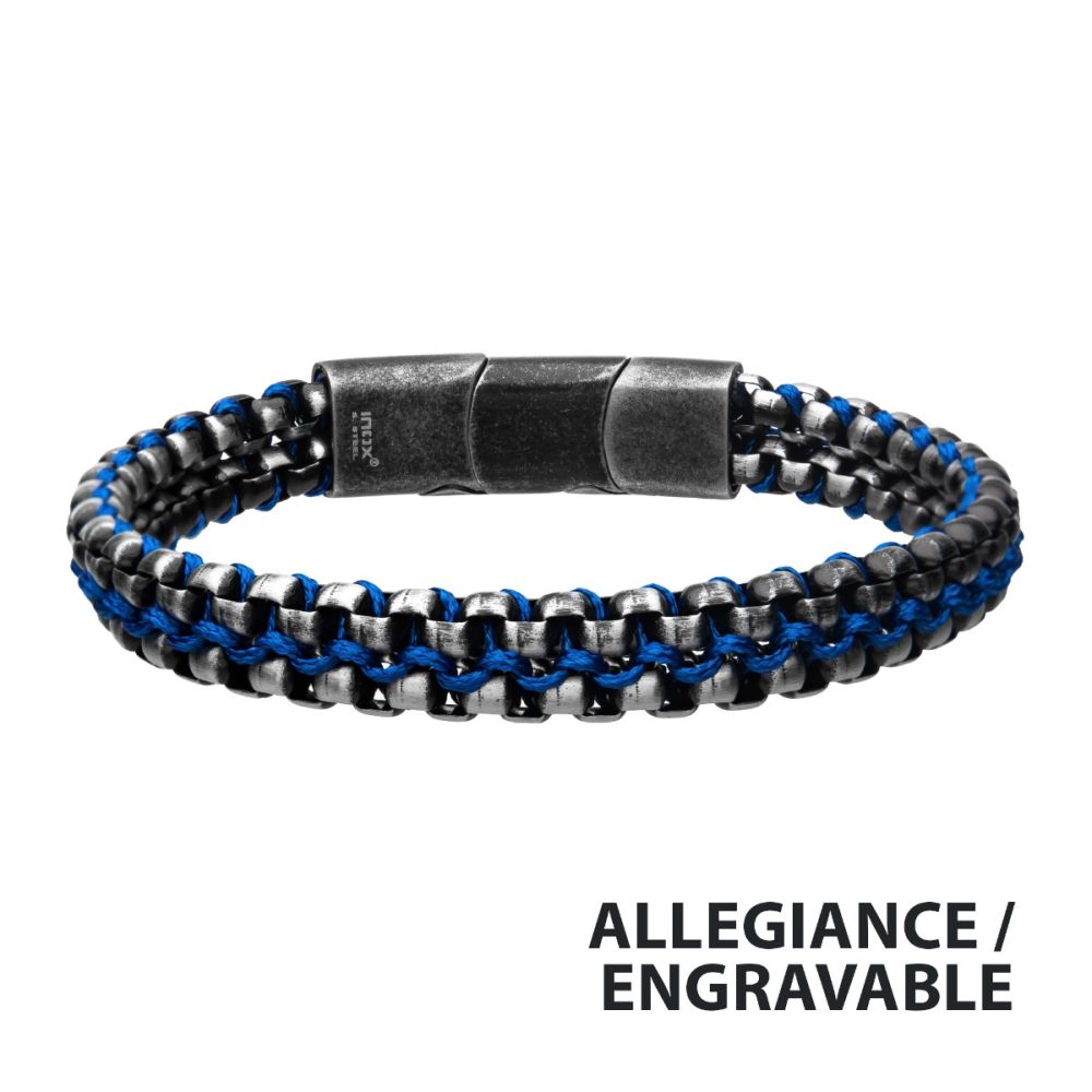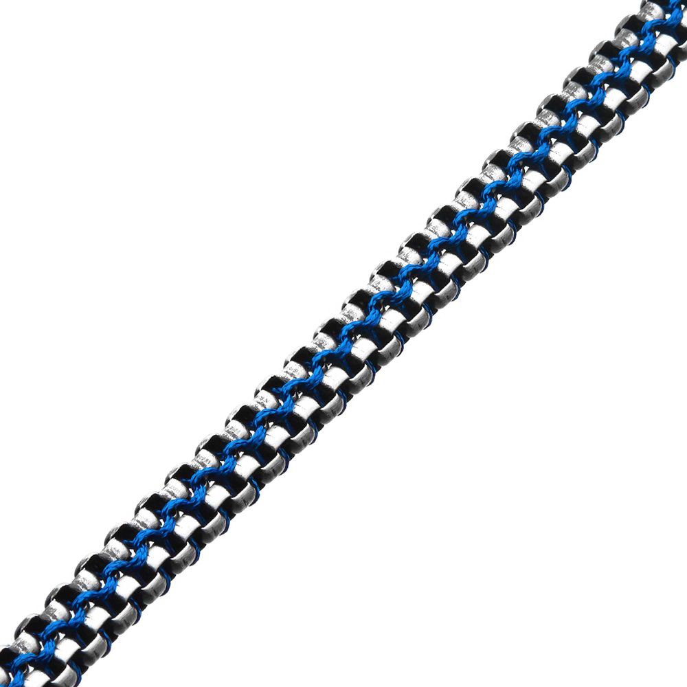 Antique Finish Box Chain with Blue Wax Cord Bracelet