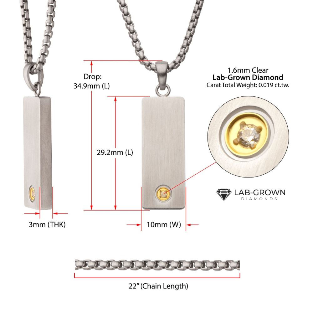 Men's Clear Lab-Grown Diamond on Matte Finish Steel Engravable Vulcan Compact Dog Tag Pendant - 1.6mm