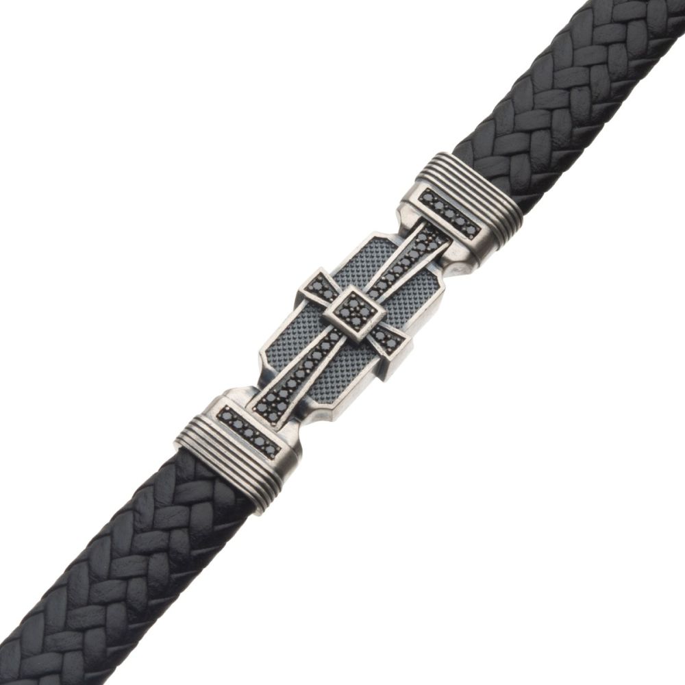The Deco Collection from embodies the charm or the roaring 20's and 30's with it's bold geometric shapes. It features solid sterling silver paired with genuine leather straps, adjustable links and accented by black Cubic Zirconia's.
