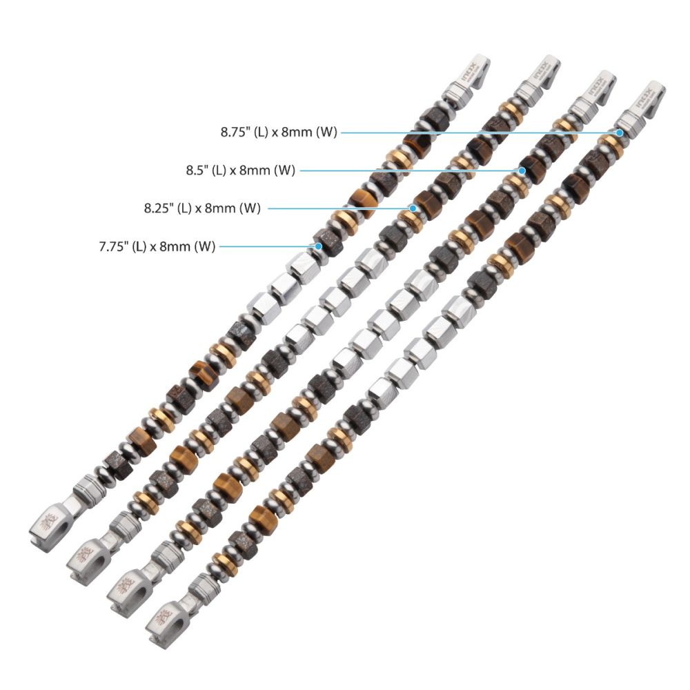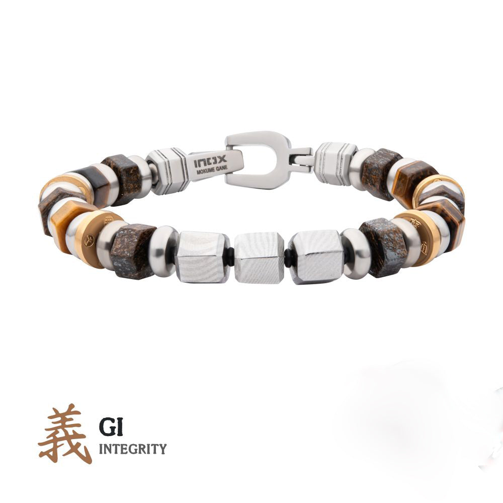 Men's 8mm Mokume Gane, Bronzite and Tiger's Eye Beads Bushido Virtue Bracelet.- GI: Integrity