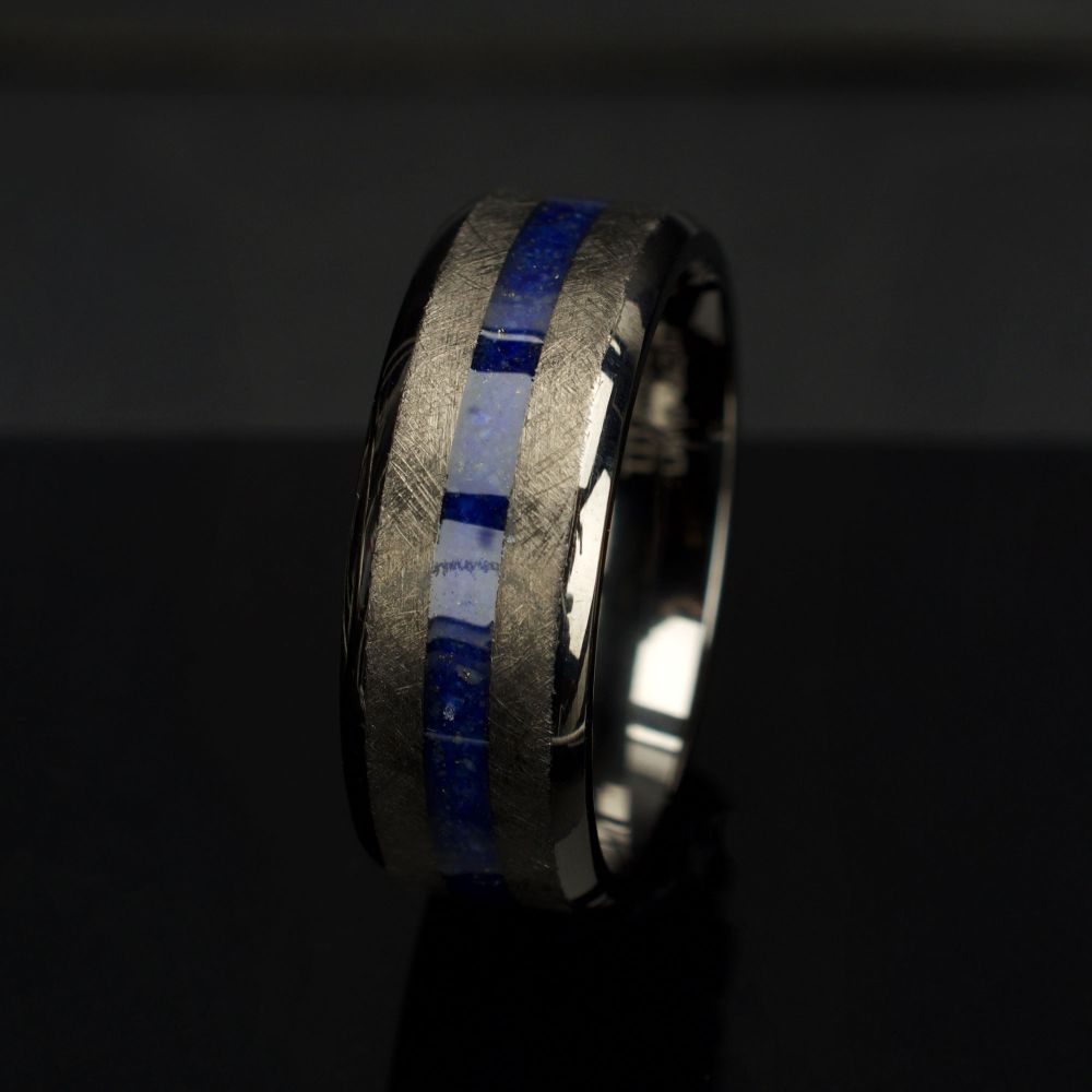 Gun Metal IP Titanium Lapis Lazuli Stone Inlay Ring